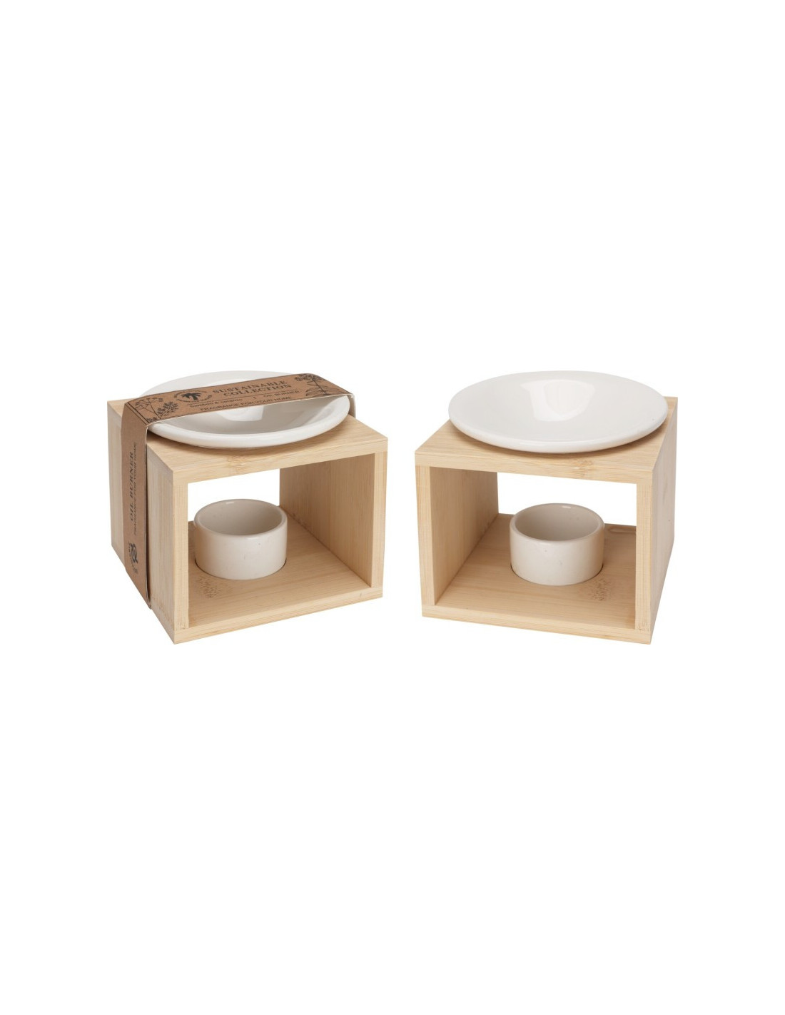 Mycket vacker oljelampa eller aromalampa i trä med vit skål och ljushållare i keramik. Lika fin i ett badrum som i ett annat rum där du vill sprida en härlig doft.
