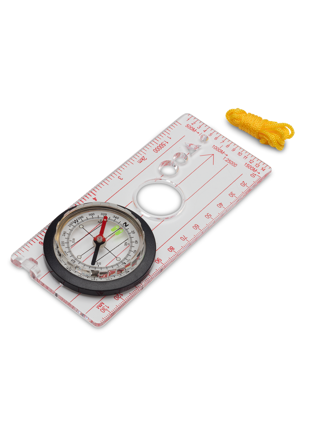 En klassisk kompass med förstoringsglas som är enkel att använda.