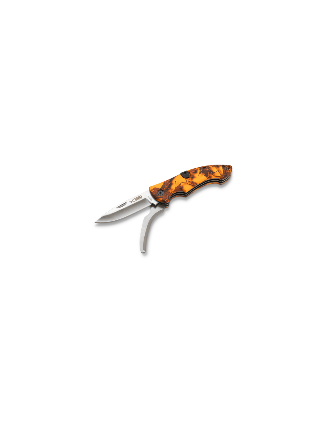 Mångsidig jaktkniv med dubbla blad, vilket gör den extra lämplig för jakt.