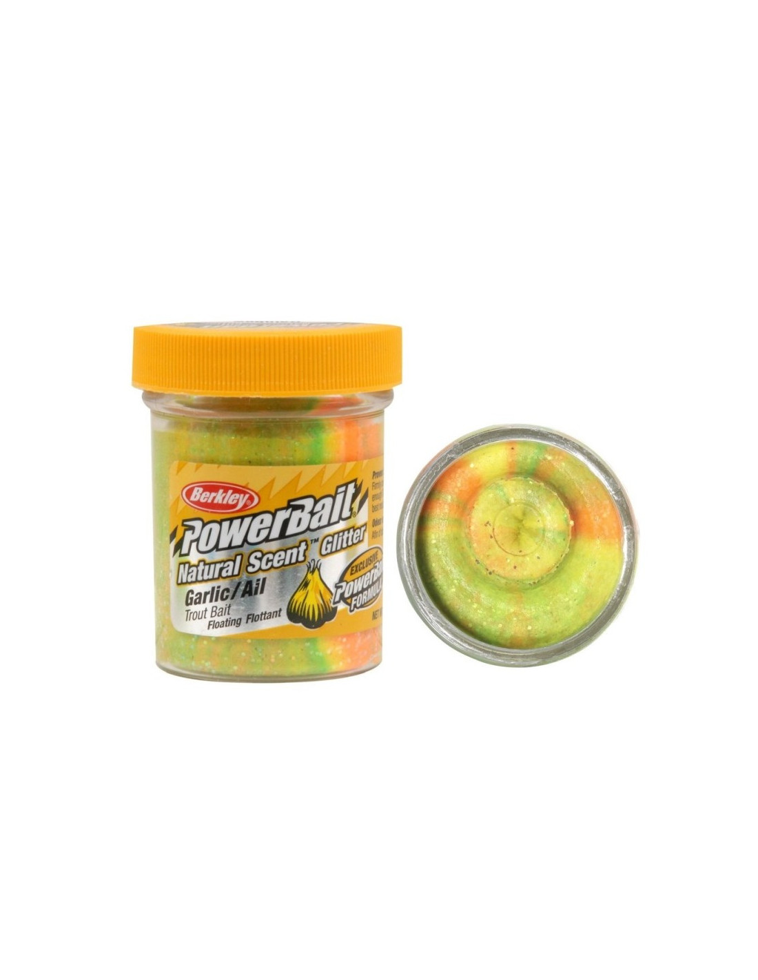 Powerbait dough with a strong garlic scent! Fish species such as rainbow trout, trout and char absolutely love the smell of powerbait! Powerbait floats, and a hot tip is to bake a small treble hook or a steel spring-coated single hook completely into your powerbait dough. If you use a sliding bottom rod, the hook will float up from the bottom.