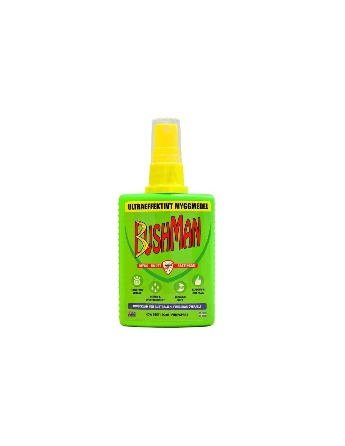 Bushman is a mosquito repellent that contains 40% DEET. Recommended by the World Health Organization (WHO) as the most effective mosquito repellent on the market. DEET was developed in the USA as protection against insect-borne diseases in tropical environments, and is approved for use in Sweden by the Swedish Chemicals Agency (Reg. No. 5392/ 5394).